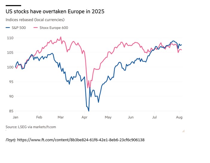 Δείκτες χρηματιστηρίων (τιμές μετοχών) σε ΗΠΑ και Ευρώπη, 2025